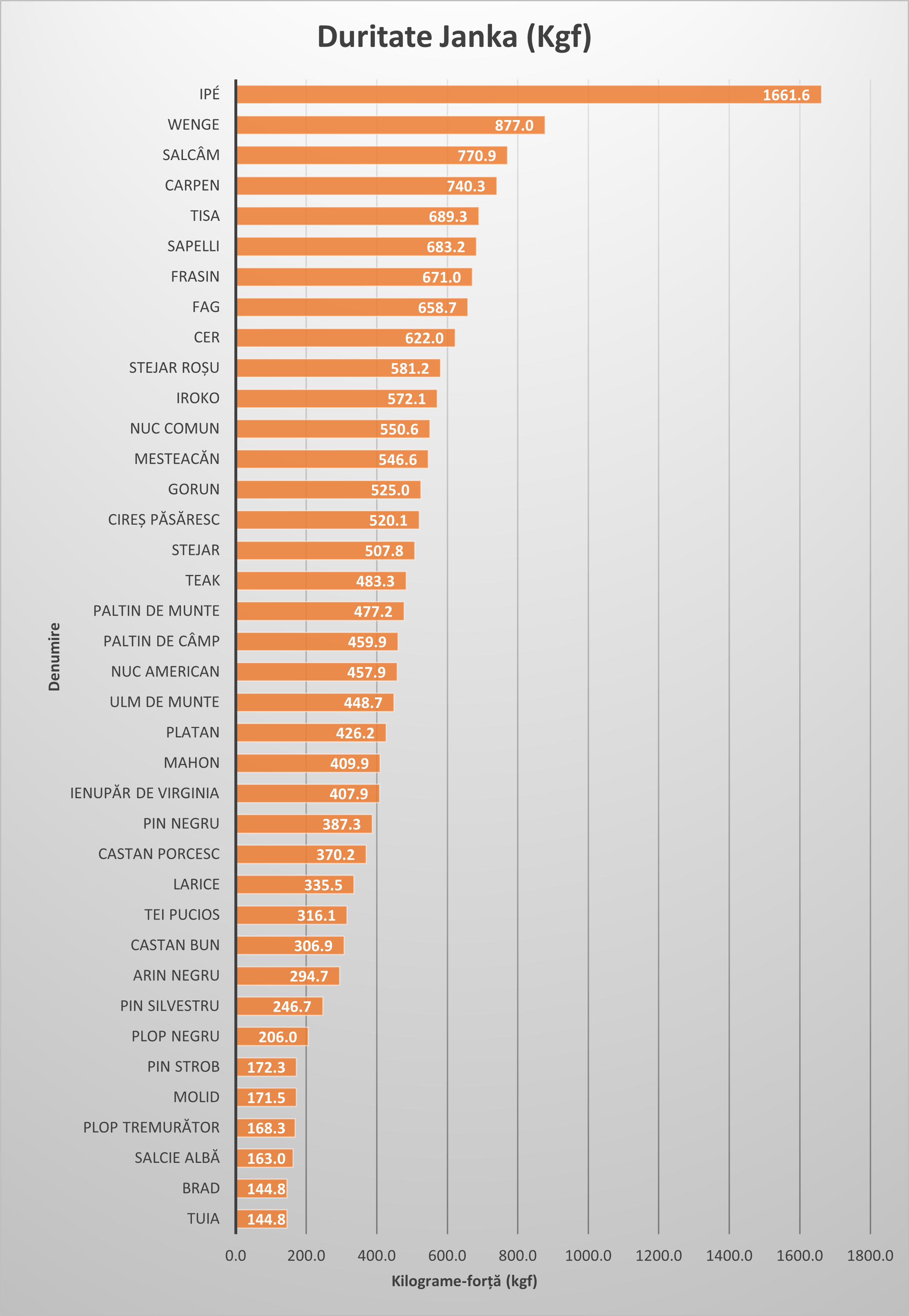 Duritatea Janka este parametrul standard utilizat la nivel internațional pentru a măsura rezistența lemnului la amprentare (lovituri) și uzură mecanică. Spre deosebire de densitate, care ne oferă informații despre masa materialului, testul Janka ne indică direct cât de dură este suprafața acestuia.